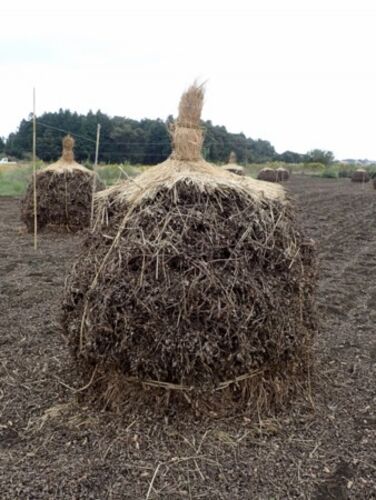 落花生のぼっち。 収穫後、積み上げて自然乾燥させると、熟成して味が良くなるらしい。