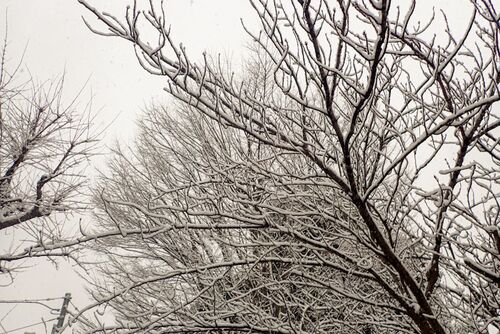 こんなに雪が降るとは思わなかった。 六角の雪の結晶が見える。 初雪を溶かすドウダンツツジの冬芽の蠟燭。 (追記:1/7)翌朝 木の実にも 松葉にも 石畳にも